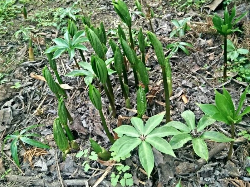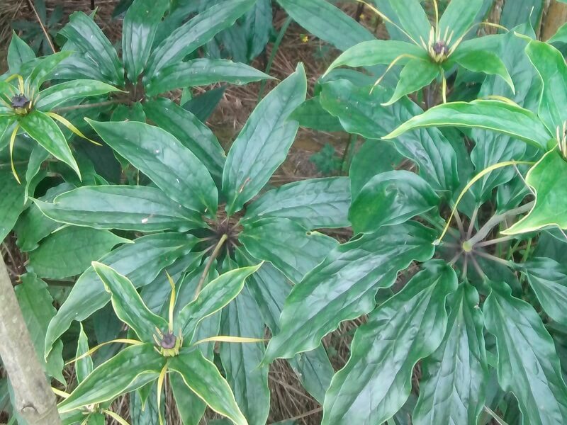 重楼,又名七叶一枝花(学名:Paris polyphylla)为百合科重楼属的植物。别名蚤休、蚩休,重台根、整休,草河车,重台草,白甘遂,金线重楼,虫蒌,九道箍、鸳鸯虫,枝花头,螺丝七、海螺七,灯台七,白河车, 螺陀三七,土三七,又名七叶莲。其特征是由一圈轮生的叶子中冒出一朵花,花的形状像极了它的叶子,它可以分成两个部分,外轮花及内轮花,外轮花与叶子很 像,约有6片,而内轮花约有8片,七叶一枝花的叶序属轮生叶,片数有个体差异、从4片到14片都有,“七叶”只是名称。花的结构特别:叶心如轮状会开花, 花萼为绿色,花瓣呈细丝带状。