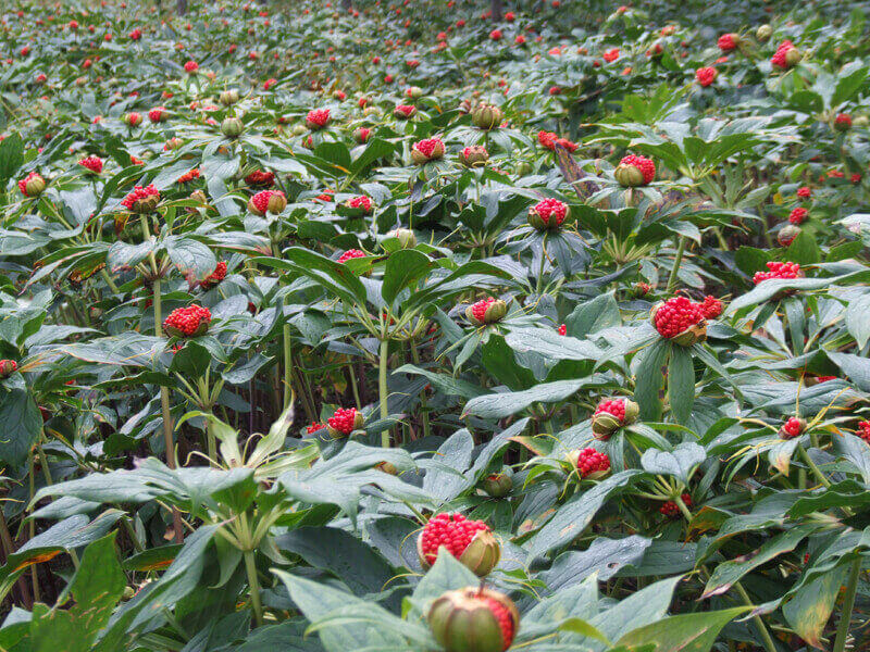 重楼植株高35-100cm,无毛;根状茎粗厚,直径达1-2.5cm,外面棕褐色,密生多数环节和许多须根。茎通常带紫红色,直径 (0.8-)1-1.5cm,基部有灰白色干膜质的鞘1-3枚。叶(5-)7-10枚,矩圆形、椭圆形或倒卵状披针形,长7-15cm,宽 2.5-5cm,先端短尖或渐尖,基部圆形或宽楔形;叶柄明显,长2-6cm,带紫红色。花梗长5-16(30)cm;外轮花被片绿色,(3-)4-6 枚,狭卵状披针形,长(3-)4.5-7cm;内轮花被片狭条形,通常比外轮长;雄蕊8-12枚,花药短,长5-8mm,与花丝近等长或稍长,药隔突出部 分长0.5-1(-2)mm;子房近球形,具稜,顶端具一盘状花柱基,花柱粗短,具(4-)5分枝。蒴果紫色,直径1.5-2.5cm,3-6瓣裂开。种 子多数,具鲜红色多浆汁的外种皮。花期4-7月,果期8-11月。
