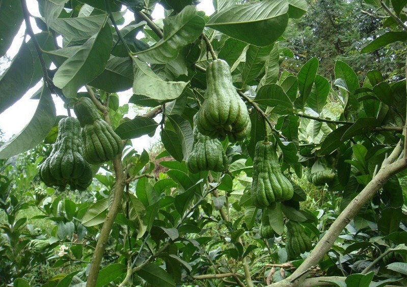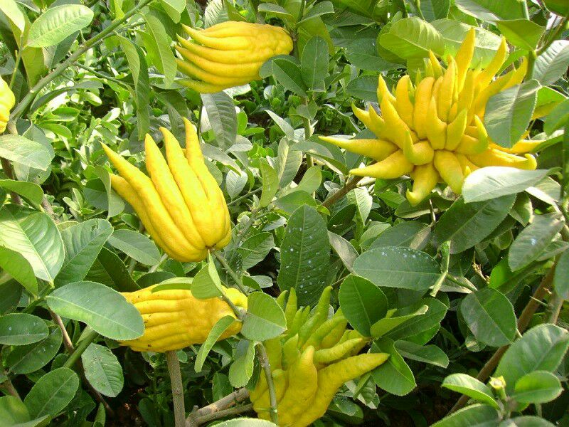 佛手(学名:Citrus medica L. var. sarcodactylis Swingle):果实在成熟时各心皮分离,形成细长弯曲的果瓣,状如手指,故名佛手。