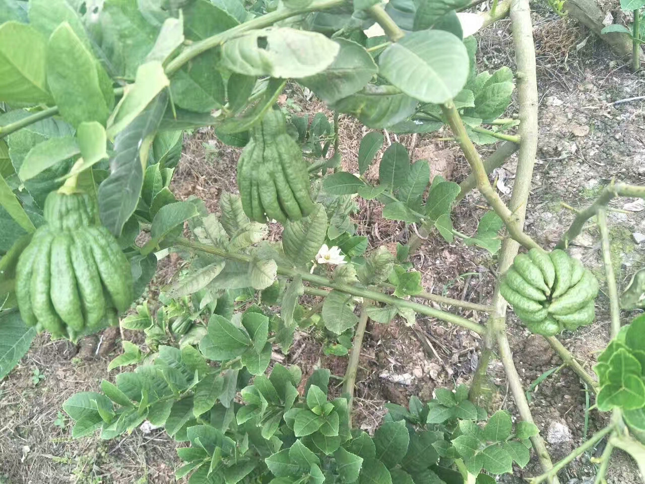 果实手指状肉条形,重可达2000克,果皮淡黄色,粗糙,果皮甚厚,难剥离,内皮白色或略淡黄色,棉质,松软,瓢囊10-15瓣,果肉无色,近于透明或淡乳黄色,爽脆,味酸或略甜,有香气;种子小,平滑,子叶乳白色,多或单胚。通常无种子。花期4-5月,果期10-11月。